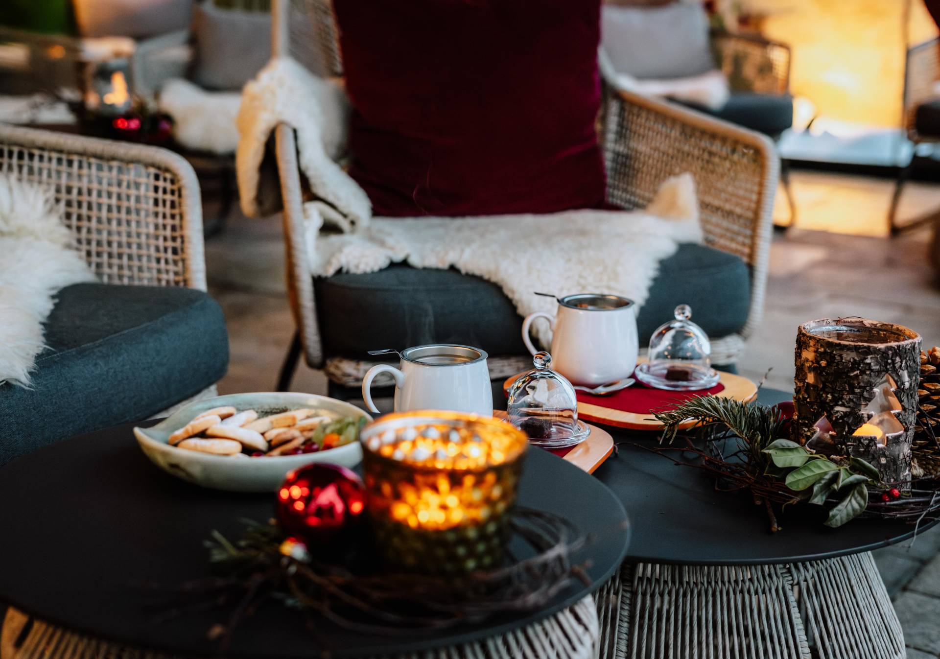 In der Adventslounge im Wintergarten gibt es Glühwein, Weihnachtsplätzchen und besinnliche Atmosphäre.