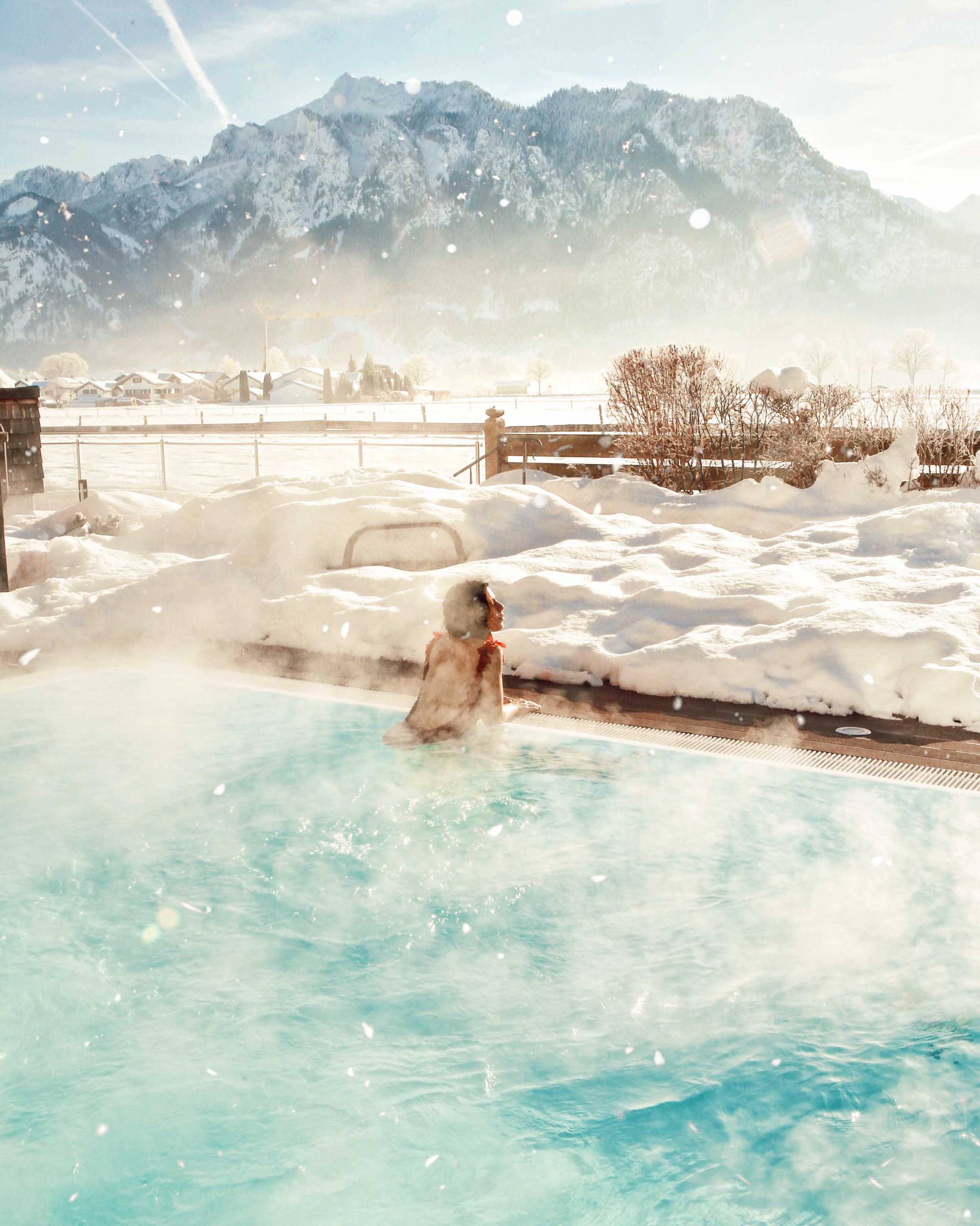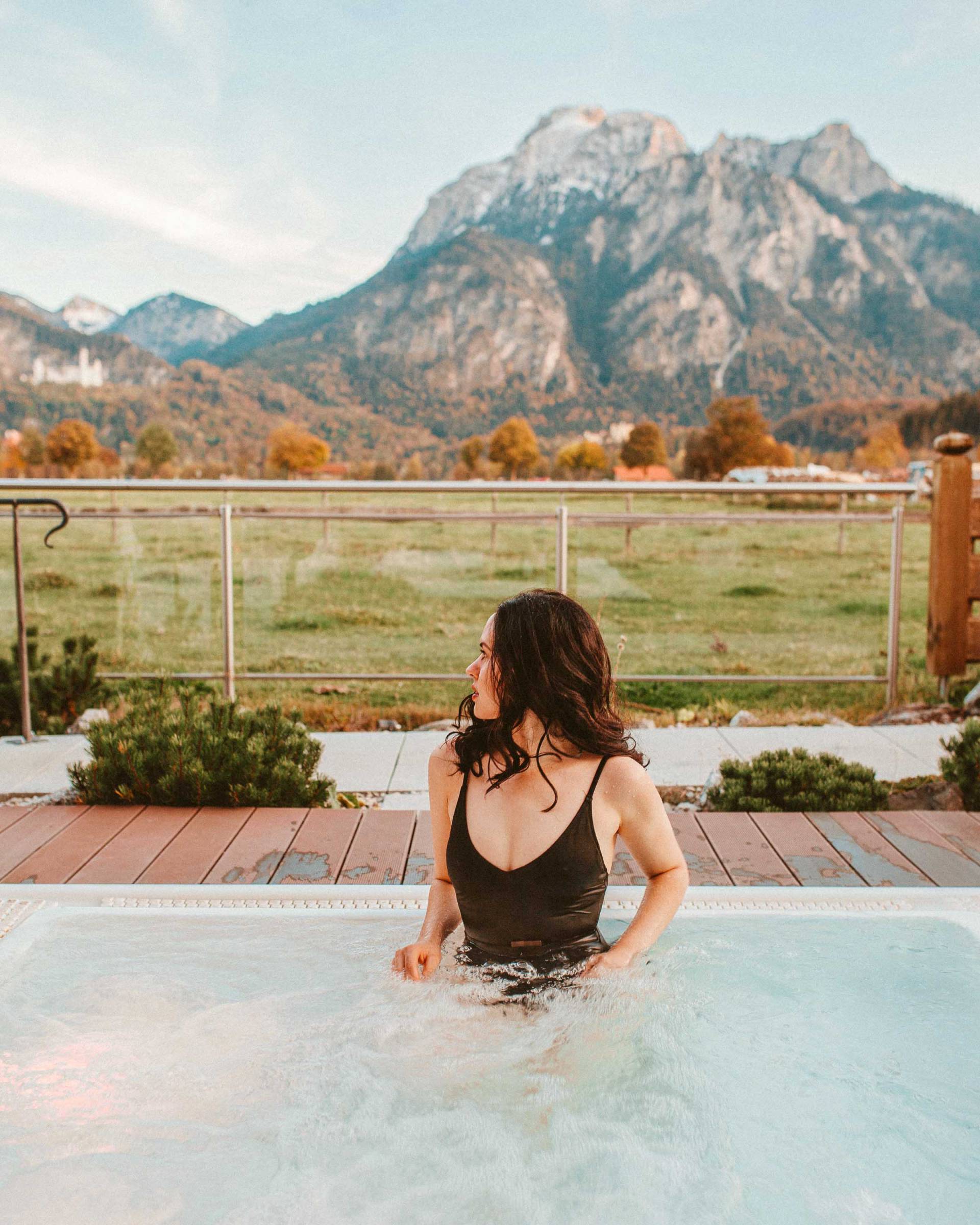 Eisbaden im Hotel mit Blick auf Neuschwanstein und Berge