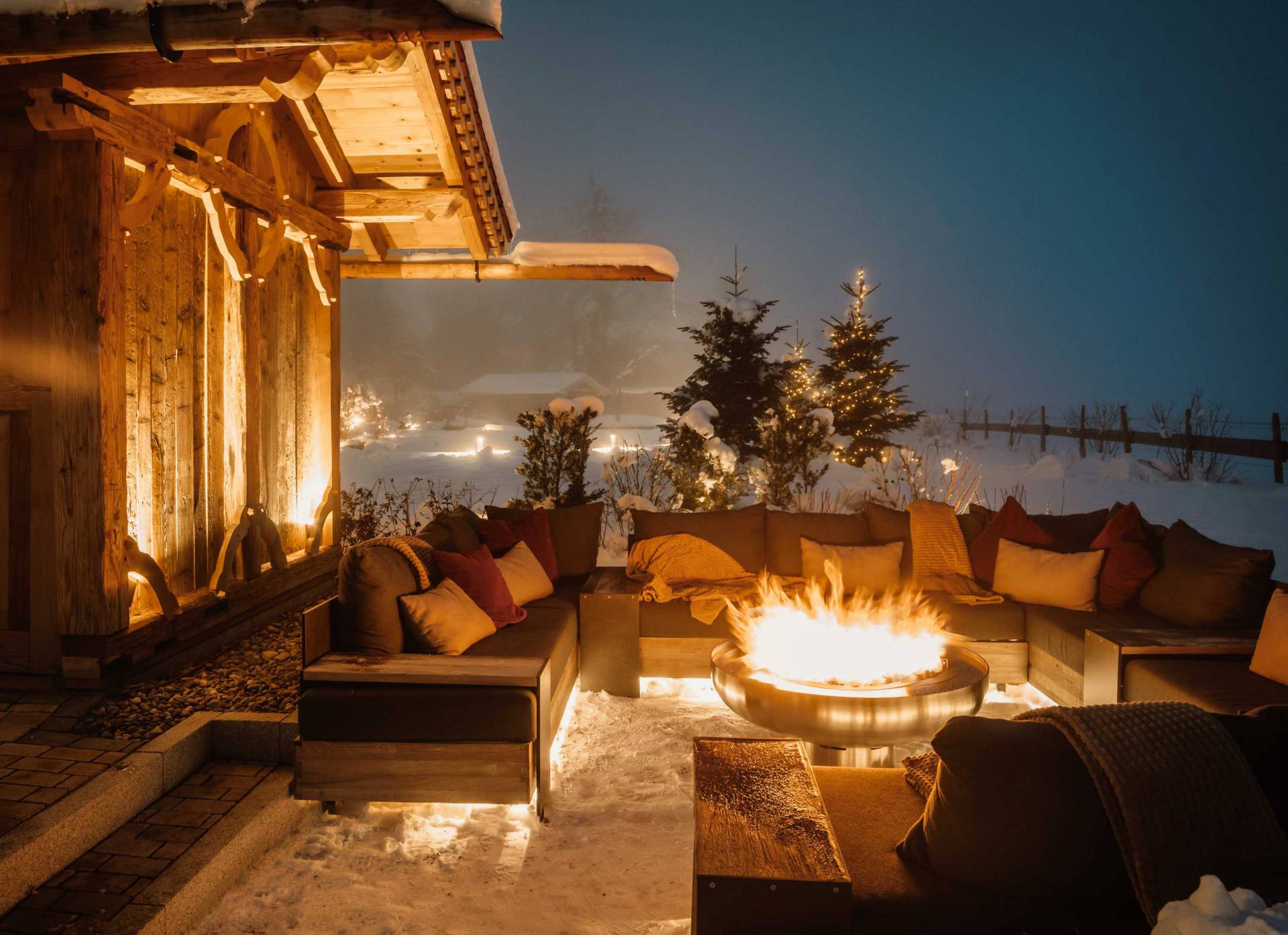 Spa-Zeit, funkelnder Schnee und knisternde Feuer